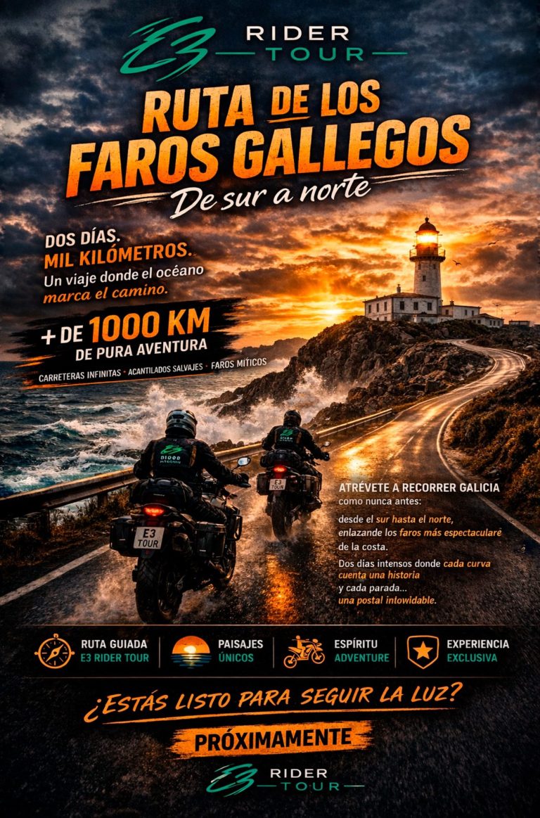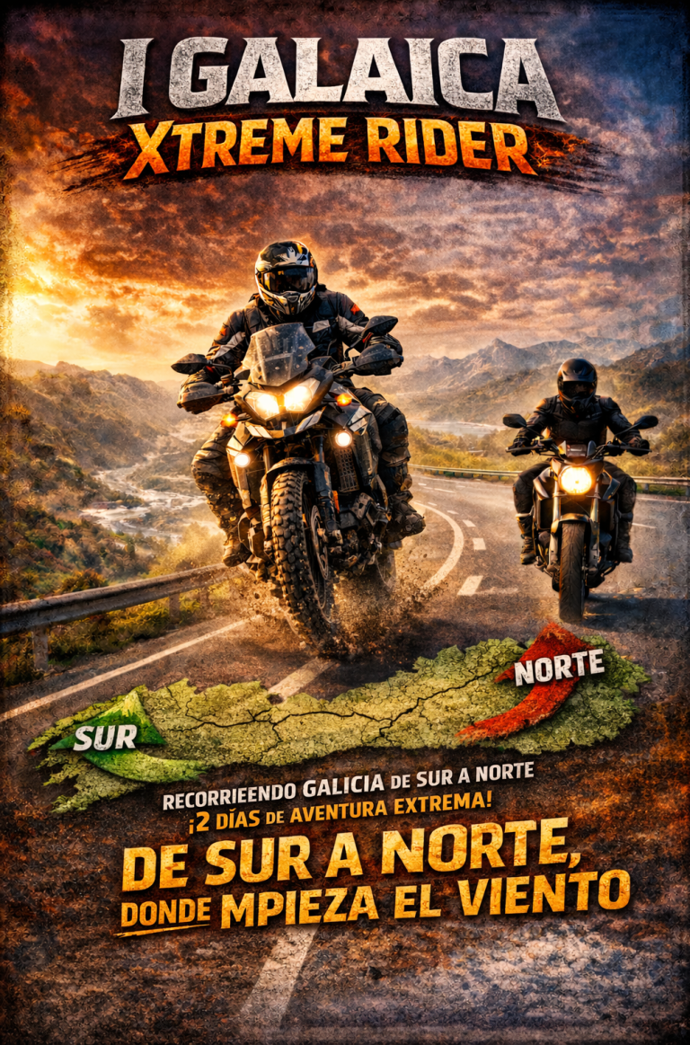 La I Galaica Xtreme Rider es una travesía épica que cruza Galicia de sur a norte, enlazando carreteras salvajes, paisajes infinitos y puro espíritu rider. Desde el primer giro de gas hasta el último kilómetro, es una experiencia diseñada para sentir la moto, la ruta y la aventura en su estado más puro.