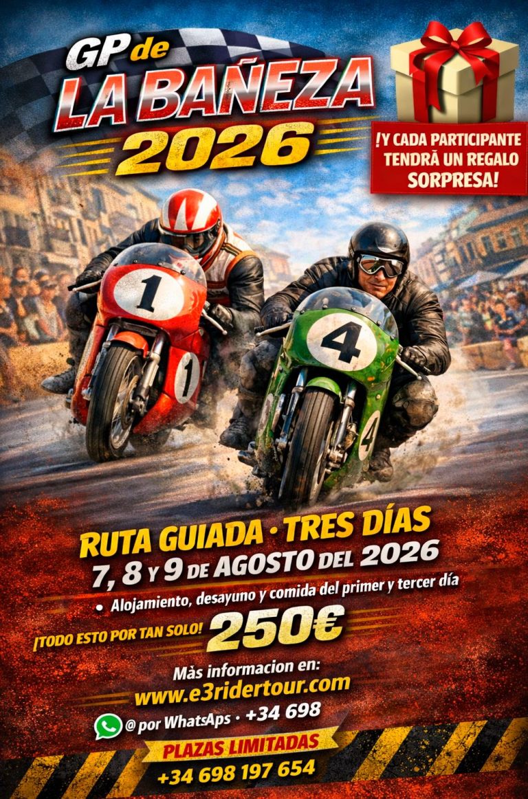 Vive uno de los eventos más míticos del motociclismo urbano. Ruta en grupo, buen ambiente, curvas y gasolina hasta llegar al GP de La Bañeza 2026.